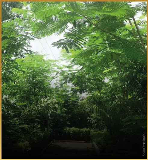 From the intricate patterns of raindrops to a diverse array of plant life, tranquil water features, leaf-inspired pavilions and sculptures, each element is meticulously crafted to evoke the rejuvenating atmosphere of a lush garden basking in the freshness after the rain